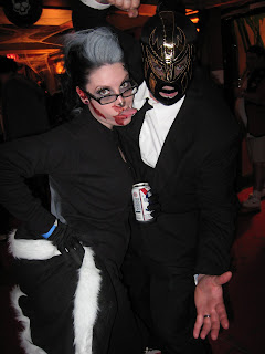 If I ever start a band (oh that high school dream that will never die), I am for SURE going to wear animal costumes while we play. I say that now because it's been a few months since I donned the "Finger Lickin' Strip Tease" suit. I've forgotten how it feels like boiling death when you're in there. Much like how female cats forget there are barbs on male cat junk that shreds them during mating (cause for the unmistakeable howl during cat love)...they keep on sticking their cat butts in the air. Such is my feeling towards animal costumes. What was my point again?